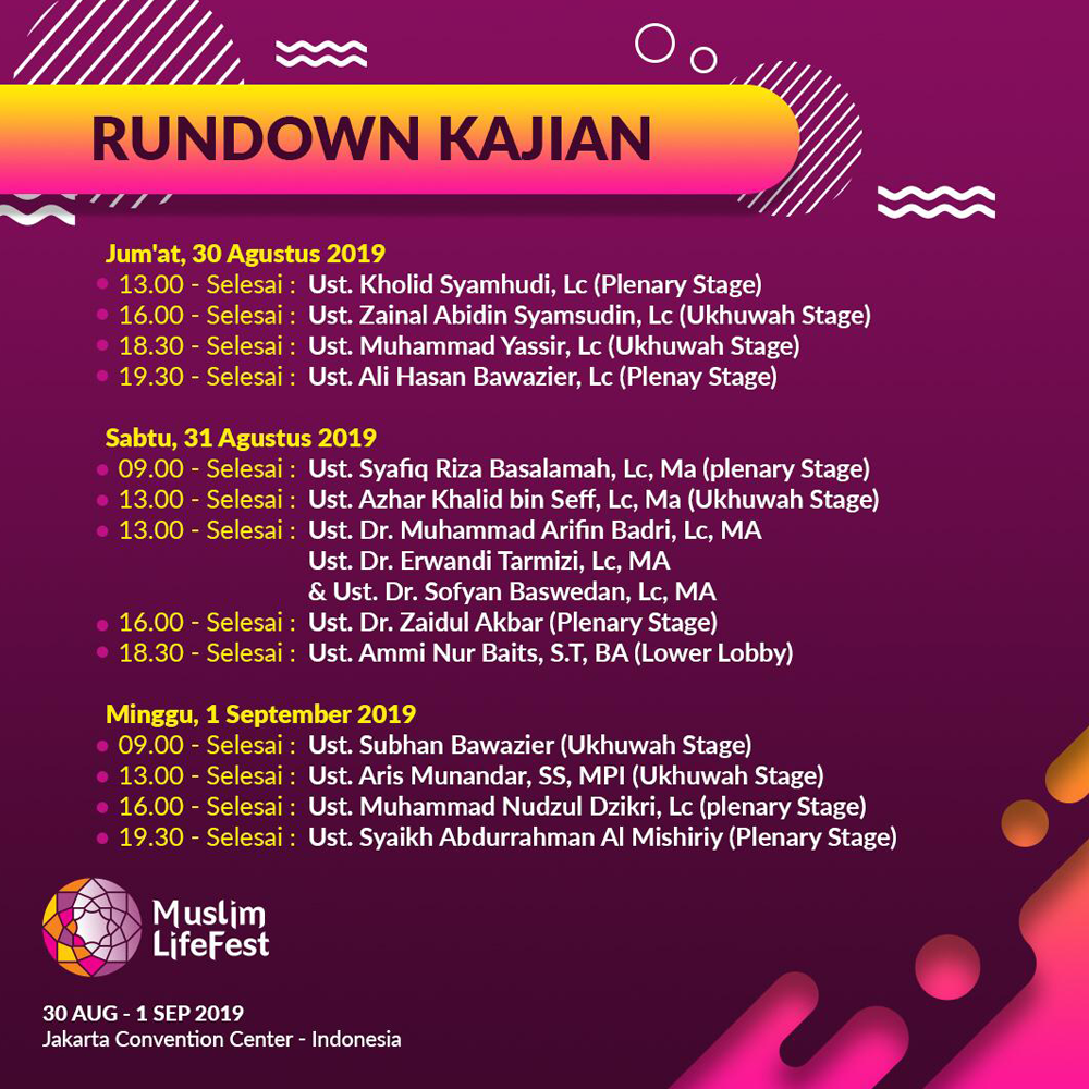 Below is the Schedule of the Muslim Life Festival 2019: